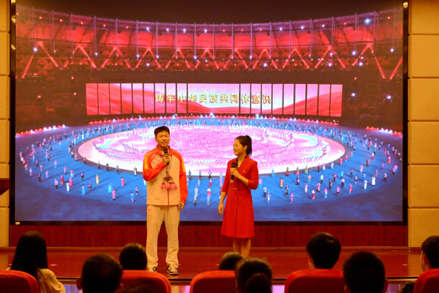 “龙舟赛的胜负关键是什么?”“齐心合力!”“如果船桨划错方向会怎样?”“会偏离航道!”师生间的互动问答,巧妙点出了团结的真谛。当得知龙舟已成为巴黎奥运会展示项目,在全球90多个国家拥有 4000万爱好者时,学子们更深刻理解了“中华民族的文化,是开放的海洋”。少数民族运动员代表陈长宇分享参赛经历时提到:“和各族队友一起训练、一起冲刺,我真正体会到‘像石榴籽一样紧紧抱在一起’的意义。”