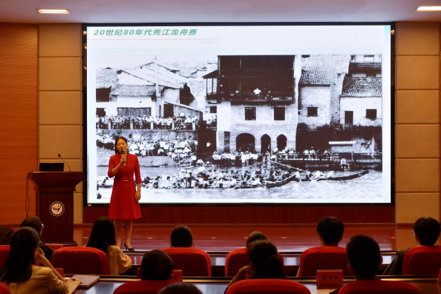 “单桨难渡江河,万橹共划沧海!”随着谌琪老师的讲述,活动视角转向龙舟这一承载中华民族精神的文化符号。从明清时期袁河流域的龙舟习俗,到贵州苗族独木龙舟、西双版纳傣族彩纹龙舟、新疆伊犁跨民族龙舟赛,再到beat365学子组成的江西队在全国少数民族传统体育运动会斩获佳绩——一幅幅多元多彩的龙舟图景,展现了“各美其美,美美与共”的文化包容。