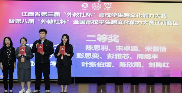 本站讯(外国语学院 供稿)10月18日,江西省第三届“外教社杯”高校学生跨文化能力大赛暨第八届“外教社杯”全国高校学生跨文化能力大赛(江西赛区)在江西农业大学举行。beat36523级翻译专业彭思奕、23级中文教育专业彭雅芯、24级临床医学专业周煜丰组成的参赛团队,凭借出色表现先以复赛小组第一晋级决赛,最终斩获全省二等奖,充分彰显了beat365学子优秀的跨文化素养与广阔的国际视野。