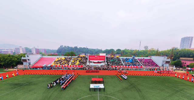 激昂的《运动员进行曲》奏响,国旗护卫队队员身着笔挺制服,以铿锵步伐护送五星红旗入场,鲜红旗帜猎猎飘扬,尽显青年学子的蓬勃朝气。紧随其后的会旗队,手举象征公平团结的校运会会旗,传递着“更快、更高、更强、更团结”的奥林匹克格言。鲜花队手捧缤纷花束,步履轻快充满活力;彩旗队挥舞五彩旗帜,似流动彩虹,将赛场氛围渲染得热烈非凡。