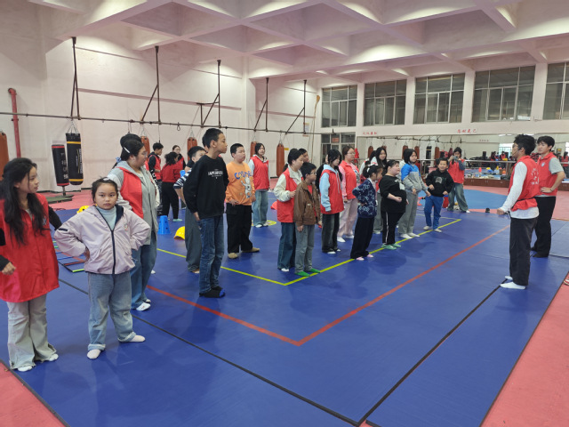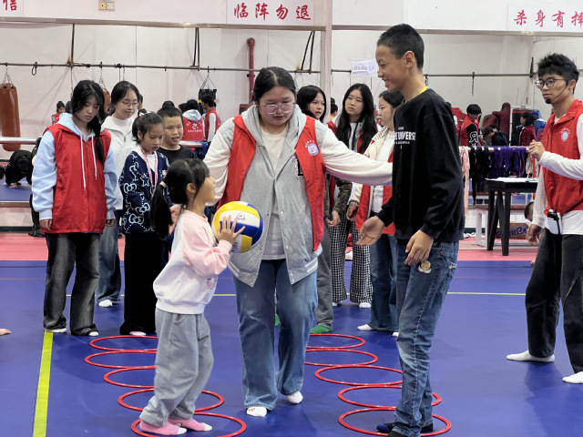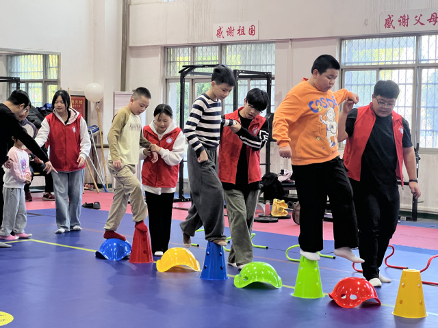 障碍走,挑战平衡,小小的身影在志愿者一对一的陪伴下,从摇摆到稳健踏出的每一步,都是战胜内心恐惧的勋章;开合跳、老虎爬,记不住动作没关系,身旁总有及时的辅助与鼓励。在这里,每一次尝试都被看见,每一次进步都被喝彩。在这里,运动是媒介,耐心是语言,见证着协调性与自信心在汗水与欢笑中,悄然生长。
