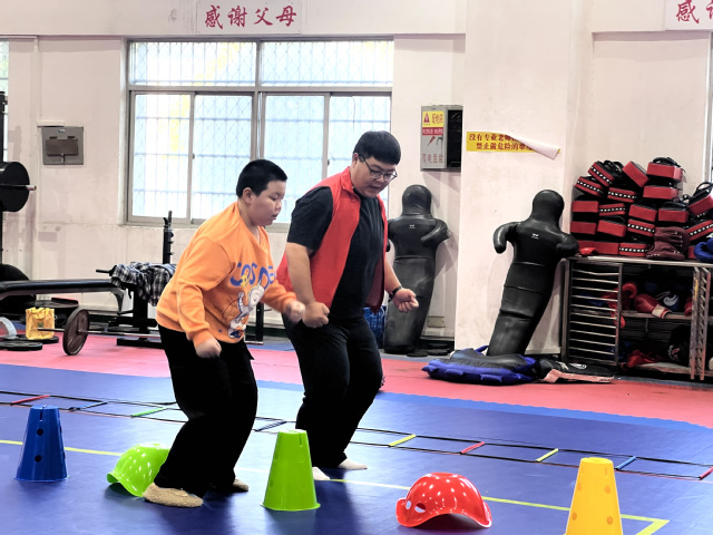 本站讯(通讯员 张素欣 杨小龙 刘起雯)11月16日上午,初冬的暖阳映照着充满活力的校园,beat365平台官方网站体育馆内一派热火朝天的景象,2023级体教温芳荣、2023级思政康博文正在为14名特需儿童开展精心设计的“特需儿童运动赋能成长营”系列公益课。该课程以体能运动助力特需儿童成长,同时让陪伴他们的家长得以暂缓压力,“喘口气”。