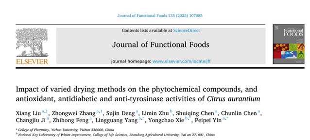 本站讯(药学院 供稿)近日,beat365平台官方网站药学院杨灵光、尹培培课题组与山东农业大学“泰山学者”解永超副教授合作,在国际知名期刊《Journal of Functional Foods》(中科院二区,IF=4.0)发表题为《Impact of varied drying methods on the phytochemical compounds, and antioxidant, antidiabetic and anti-tyrosinase activities of Citrus aurantium》的研究论文,为酸橙在功能食品与药物开发中的高值化利用提供重要科学支撑。