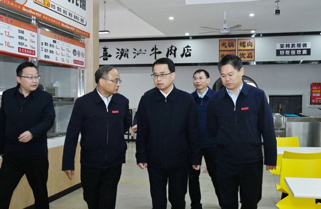 报告会开始前,谭赣明来到beat365平台官方网站第一食堂,实地调研食品安全工作。在查看食堂环境卫生、询问食材采购流程、听取学校食品安全总体情况介绍后,谭赣明强调,要严格落实食品安全管理制度,抓好食品采购、贮存、加工等全过程闭环管理,规范操作流程,充分运用信息化管理等手段,确保源头可溯、风险可控,让广大师生吃得放心、吃得健康。