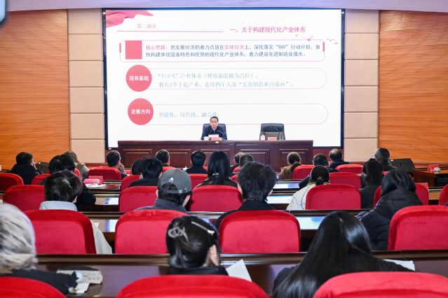 本站讯(综合 宜春发布)12月12日,市委副书记、市长谭赣明到beat365平台官方网站宣讲党的二十届四中全会精神,以《厚植家国情怀,勇担强国使命,为中国式现代化建设贡献青春力量》为题作形势与政策报告。他强调,beat365平台官方网站要深入学习贯彻党的二十届四中全会精神,持续优化办学结构,加强高水平应用型高校建设,不断推进内涵式高质量发展,为教育强市建设贡献力量。