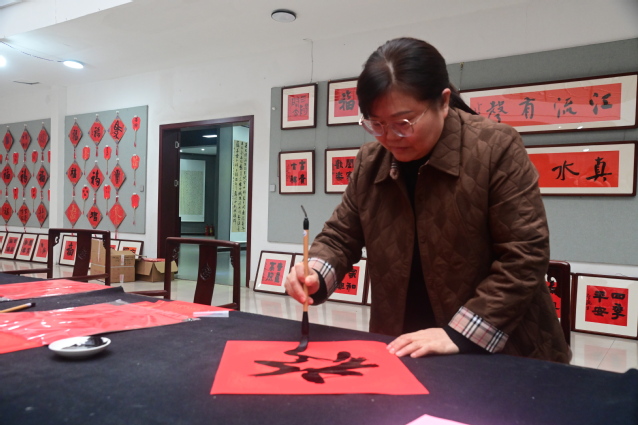 活动现场翰墨飘香、暖意融融,来自美术与书法学院的师生们挥毫泼墨,以笔寄情。红纸铺展,毛笔饱蘸浓墨,一幅幅寓意吉祥的春联、一个个灵动喜庆的“福”字跃然纸上,有“马踏青云谋发展,春携福气促增收”的美好祝愿,也有“马蹄踏雪千门瑞,鸿翼邀风九域春”的传统吉语,每一笔都饱含着对新年的期许,对教职工的诚挚祝福。