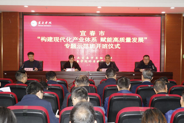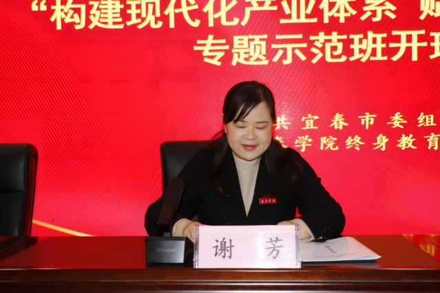 宜春市委组织部副部长湛海涛,校党委委员、副校长谢芳,终身教育学院院长傅晓滨,市委组织部干部教育科科长、四级调研员辛悦然出席开班仪式。湛海涛在开班仪式上作开班动员讲话。校党委委员、副校长谢芳在开班仪式上指出,产业是发展的根基,构建现代化产业体系、培育新质生产力,是推动经济高质量发展的核心支撑,更是宜春在区域竞争中抢占先机、赢得主动的战略选择。希望以此为契机和纽带,加强与各单位的深度合作,聚焦宜春产业发展需求,深化产学研协同创新,推动更多科研成果落地生根、开花结果,助力校地双方在共建现代化产业体系上融合发展、互利共赢。市委组织部有关同志出席了开班仪式。