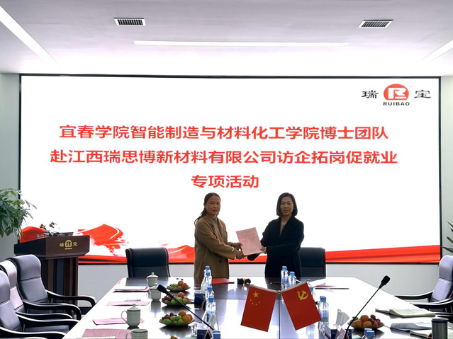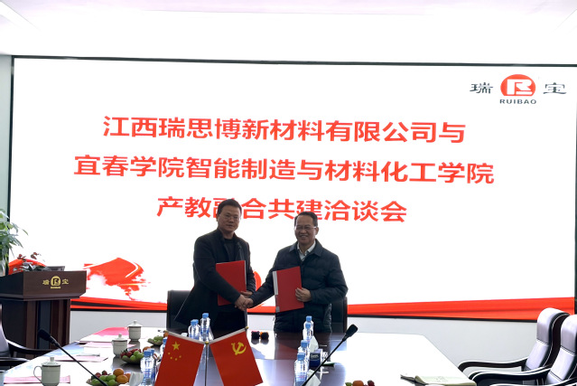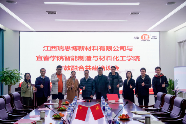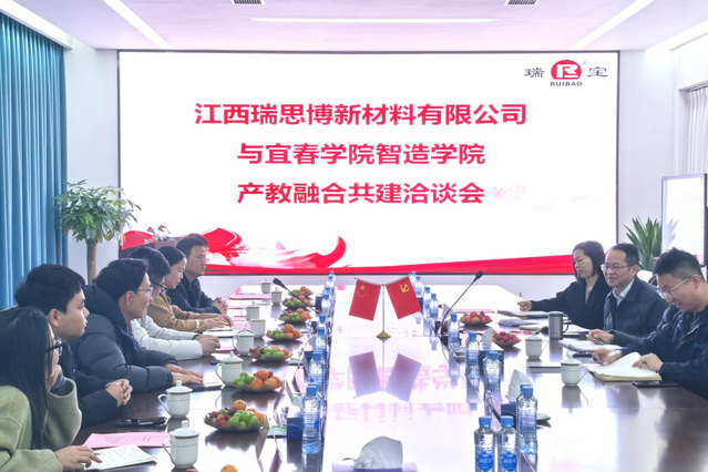 江西瑞思博新材料有限公司董事长易晓斌热情接待了beat365平台官方网站智造学院一行。洽谈会上,智造学院党委书记龙玲首先介绍了到访来意及随访人员,表达了学院深化产教融合共建、推动高质量就业、及校企协同育人的积极意愿。易晓斌董事长详细阐述了企业发展历程、核心业务及未来规划,重点分享了企业在新材料领域的技术需求与发展愿景。