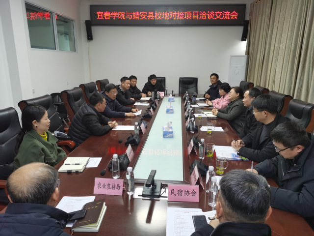 本站讯(科学研究处(校地合作办公室) 供稿)为精准对接地方发展需求,推进校地合作项目落地落实,1月28日,校党委委员、副校长余新卫,校党委委员、纪委书记杨志其,校党委委员、宣传部部长詹婷以及科学研究处(校地合作办公室)、终身教育学院等相关人员一行,专程赴靖安县就深化校地合作进行座谈。靖安县委书记喻军,县委常委、宣传部部长钱锐,副县长余华武以及相关部门负责人出席座谈交流会。