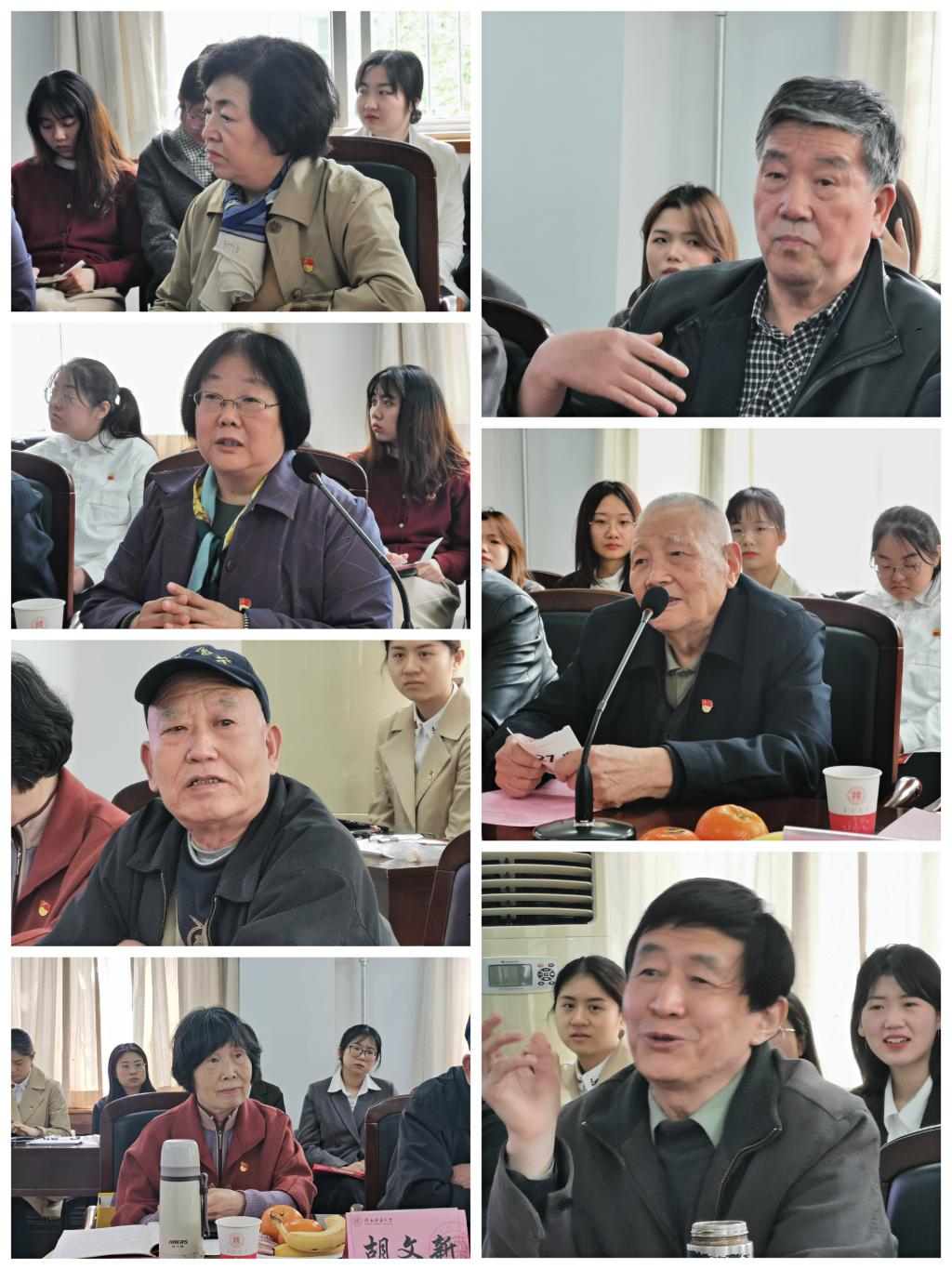 座谈会伊始,退休党支部书记侯玉海老师和本科生第一党支部书记李丹分别介绍了参加座谈的新老两代党员。随后,来自毕业班的青年党员代表为老一辈党员教师们献上了一首饱含深情的诗朗诵——《红船》,赢得了在场教师学生的阵阵掌声。