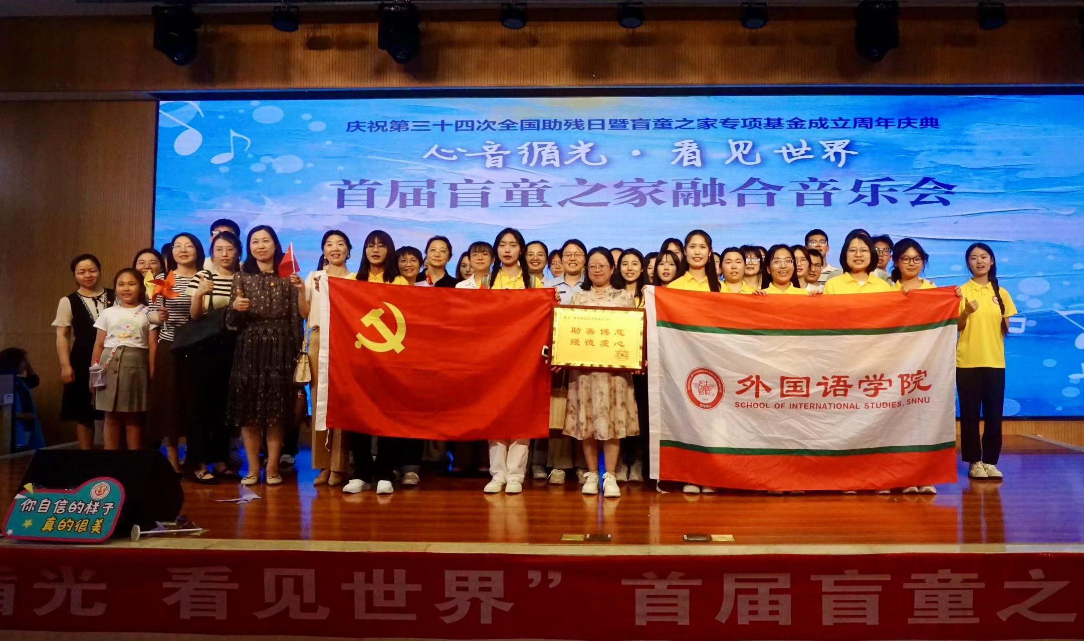 应陕西白手仗视障服务中心与白手仗盲童之家专项基金理事长慧娜的邀请,永利集团3044am官方入口英语系党支部和学院工会于2024年5月19日参加了在西安市第六中学南校区举办的“心音循光,看见世界”首届盲童之家融合音乐会。英语系党支部书记王艳滨、副书记王立永,大英一支部党支部书记高芬,院工会主席兰军,以及杨金梅、胡哲、陈蕾、罗雅晖、王辉、王艳辉、荣亮、朱丽英等教师,带领研究生及2023级英语优师一班学生志愿者积极参与此次特色主题党日活动。