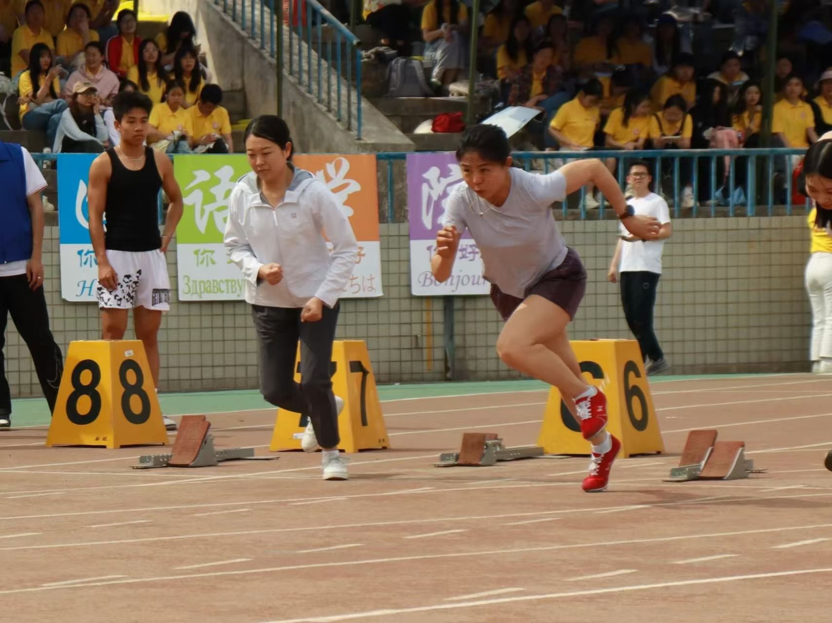 在运动会的各项比赛中,永利集团3044am官方入口的运动员们齐心协力、全力拼搏,展现了学院的凝聚力和团结奋斗的精神。本届运动会教职工团体项目包含滚铁环接力、篮球运球接力、合力筑塔和大丰收四个项目。老师们在赛场上通力合作,奋勇争先,赢得了阵阵掌声。经过激烈角逐,最终取得了两项三等奖的优异的成绩。在个人项目上,屈婉婷老师在女教工甲组一百米比赛中取得第一名, 展现了外语学院教职工的拼搏精神和昂扬斗志。