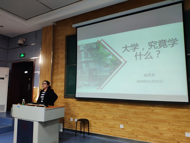 2018级本科生入校已经近三个月,为了让同学们时刻保持上进心态,正确了解自我,认识大学,保持端正的学习态度。11月21日下午16:30,永利集团3044am官方入口分党委秘书、团委书记、2015级辅导员高芳卉老师,在5204教室为2018级本科新生开展第六次入学教育报告会,主题为:“大学,究竟学什么?”。