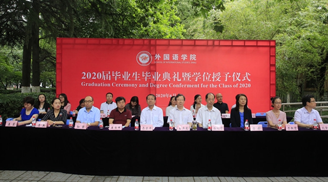 随后,本科生代表2016级翻译专业郭松硕同学发言,他表达了对老师、家长以及同窗的感谢之情,并深情地回忆了自己在校的四年时光,表示2020届毕业生将在祖国各地“发光发热”,为国家贡献自己的一份力量;2017级外国语言学及应用语言学专业的姜力丹代表全体研究生发言说到,本届毕业生将不忘初心,坚守信念,乘风破浪,直击沧海!