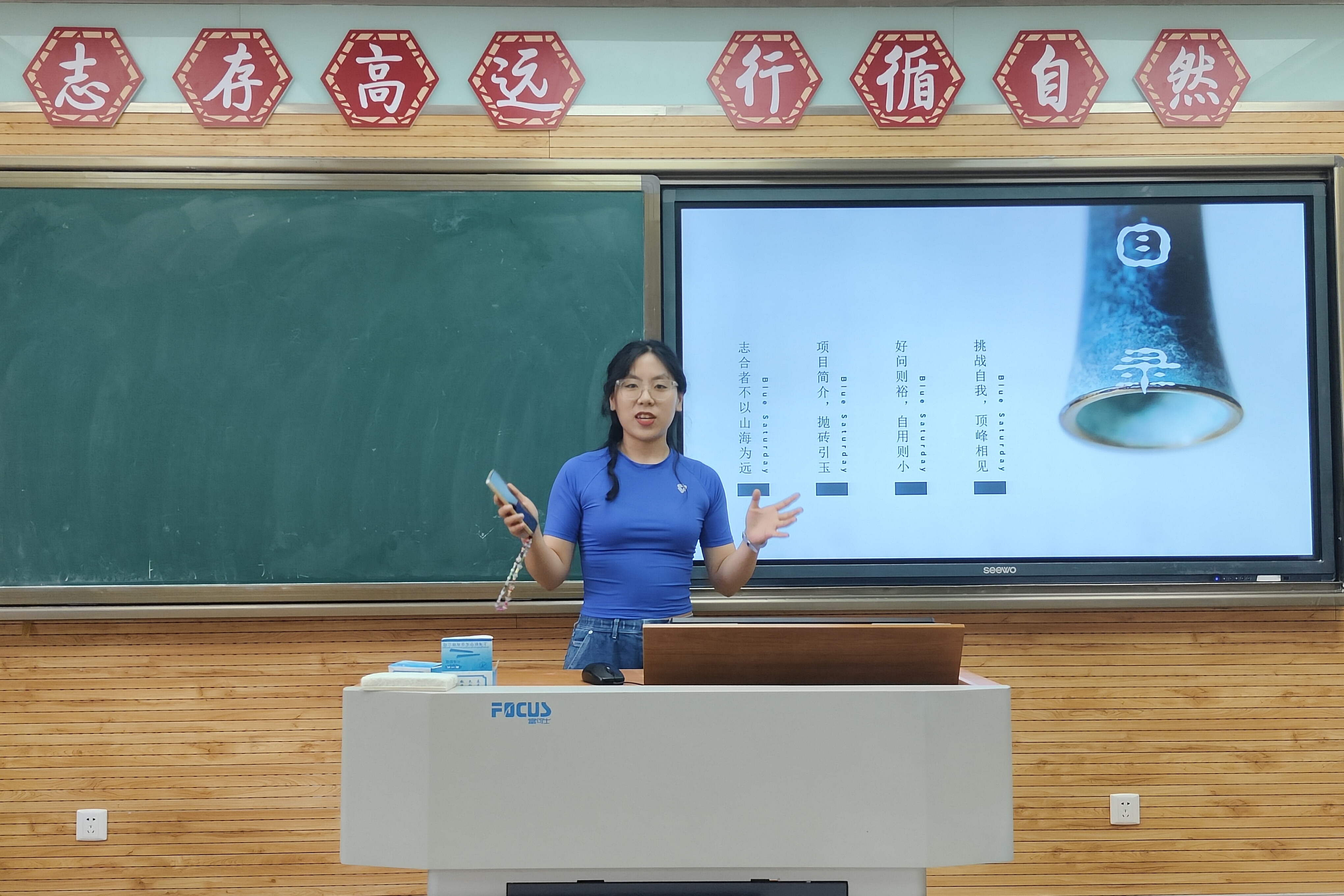 马一童同学作“春光明媚 敢向山行——浅谈我与小挑的百天携程”为主题的分享。他分享了自己在小挑项目中的挫折、感想和改进方案,最终成功创立独具创新的藏文化文创项目。马一童同学强调,同学们要从生活实际出发,寻找适合的研究项目。他认为,小挑不仅是一场漫长的实践之旅,更是一场跨学科间的双向奔赴。在此过程中,合作和分享必不可少。他激励同学们要勇于踏出第一步,通过学科竞赛途径实现自己的梦想。