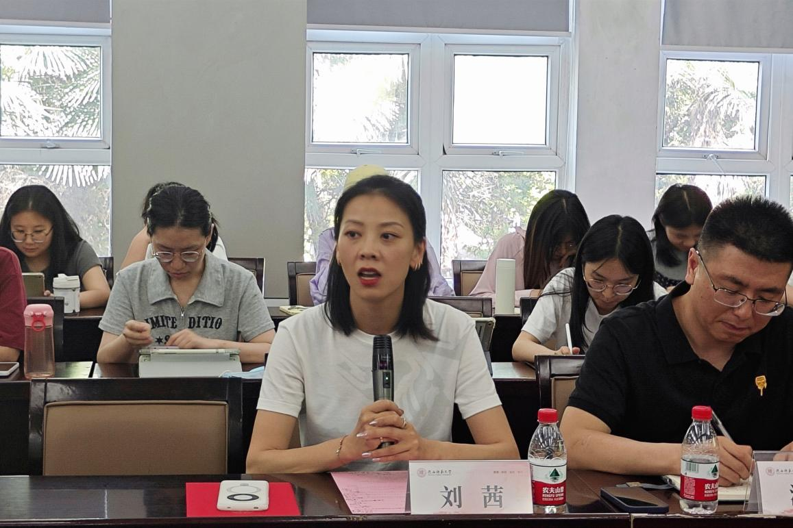 会议第五项,翻译硕士实习生代表2022级英语笔译专业刘梦靓汇报实习中期总结。