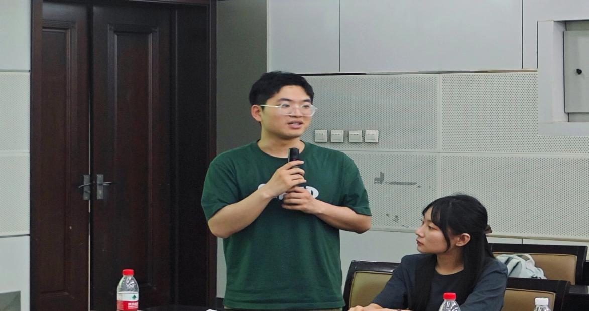 会议第六项,翻译硕士代表2023级英语口译专业任博文、翻译系本科生代表2020级翻译专业李飘发言。