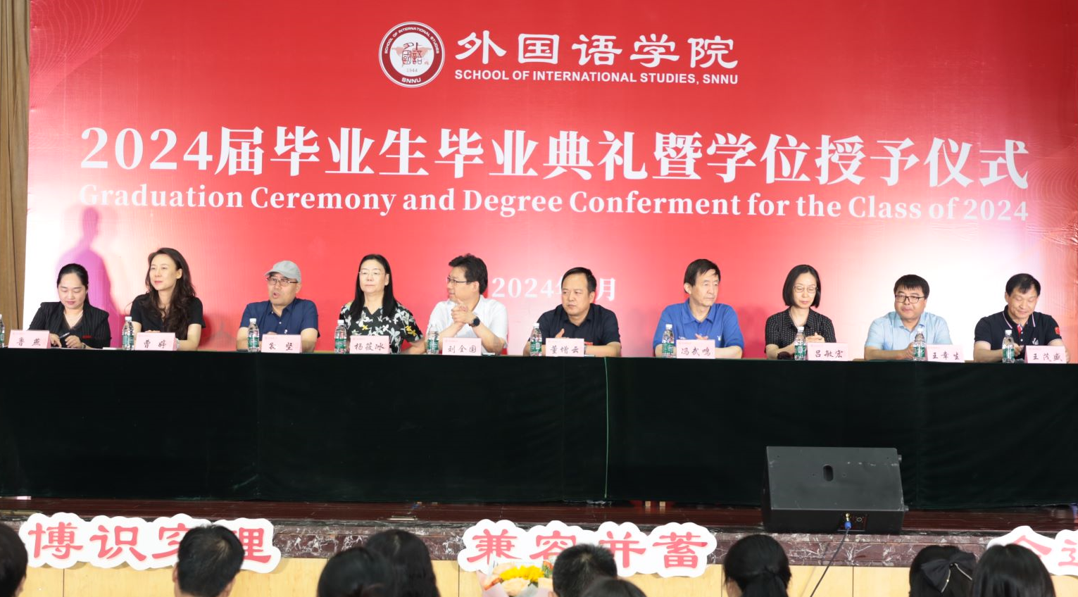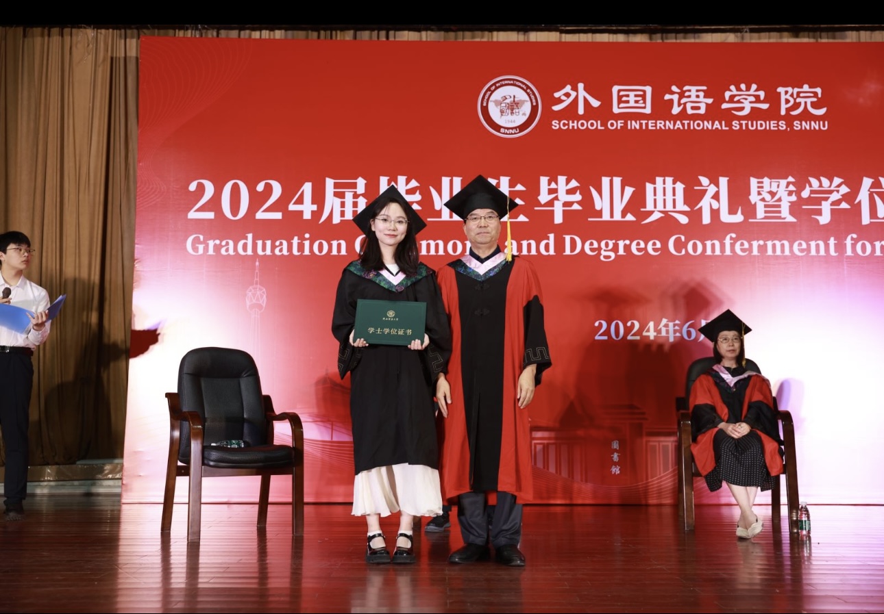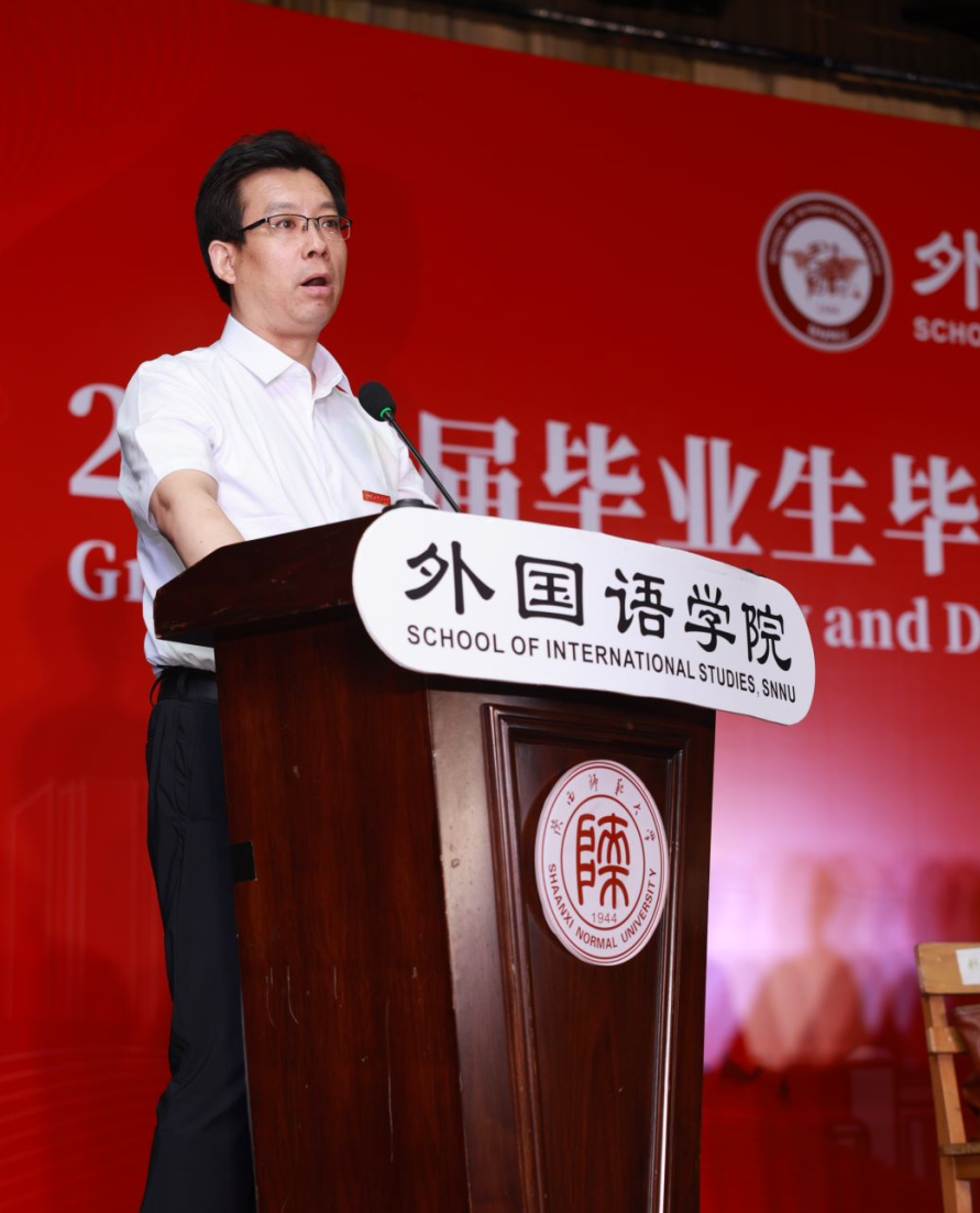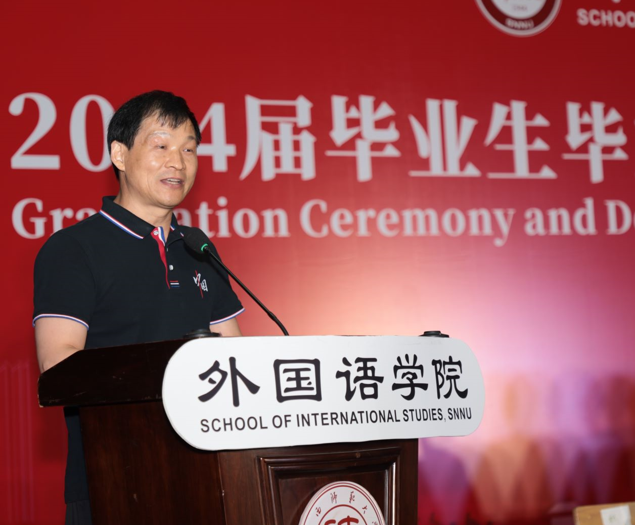 随后,本科英语师范毕业生代表王路峣、本科非师范毕业生代表日语专业黄楠楠、研究生毕业生代表学科英语专业王瑟艺分别发言。代表全体同学向学院领导、老师和亲友致以衷心的感谢,并表示将传承师大人的精神,肩负外语人的使命,用外语讲好中国故事,谱写新时代教育报国之歌。