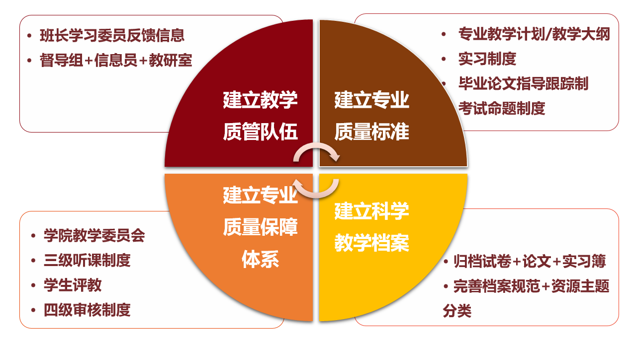 永利集团3044am官方入口围绕人才培养各项要求,严把毕业关,从建立教学质管队伍、专业质量标准、客观教学档案及专业质量保障体系四个方面构建了基本完善的教学质量保障体系。