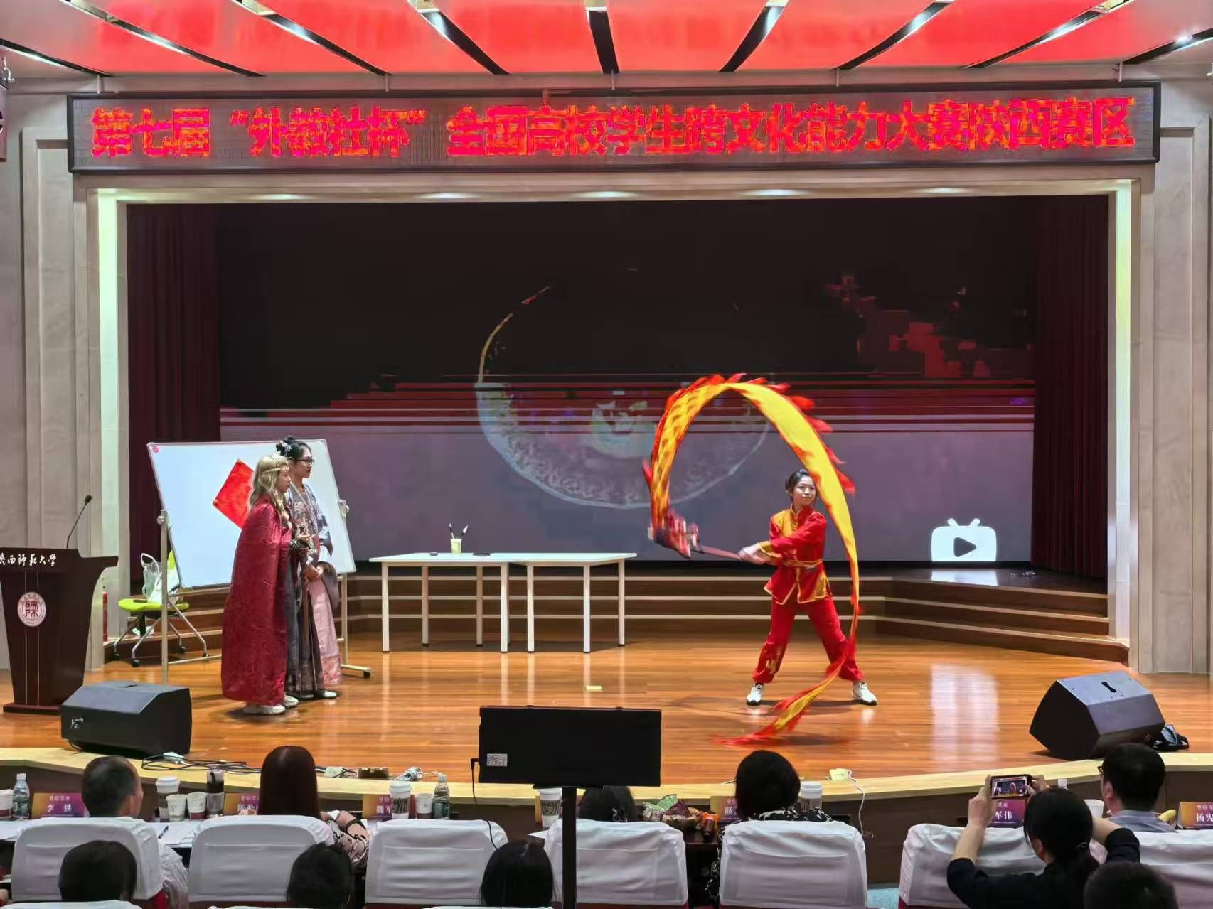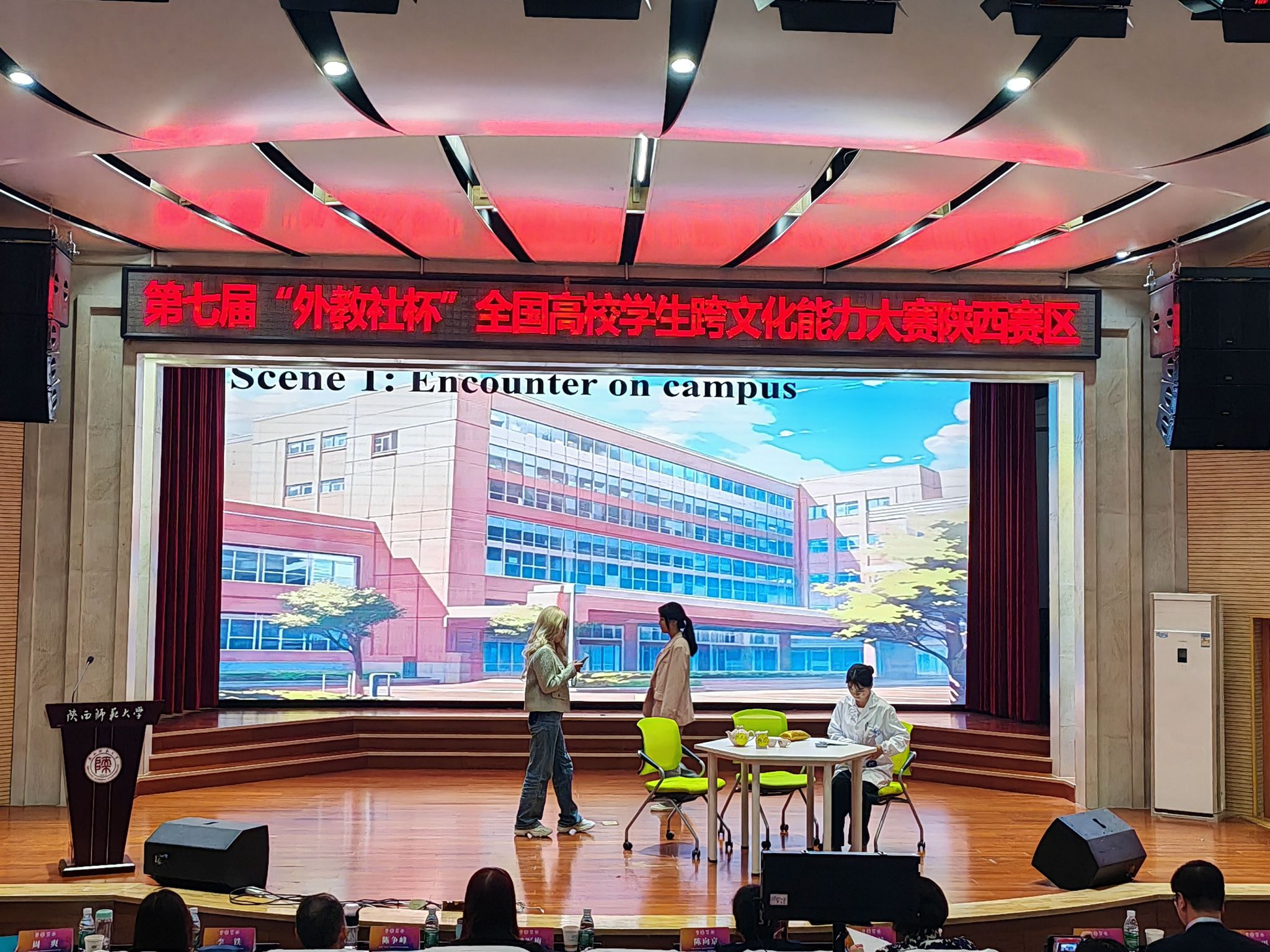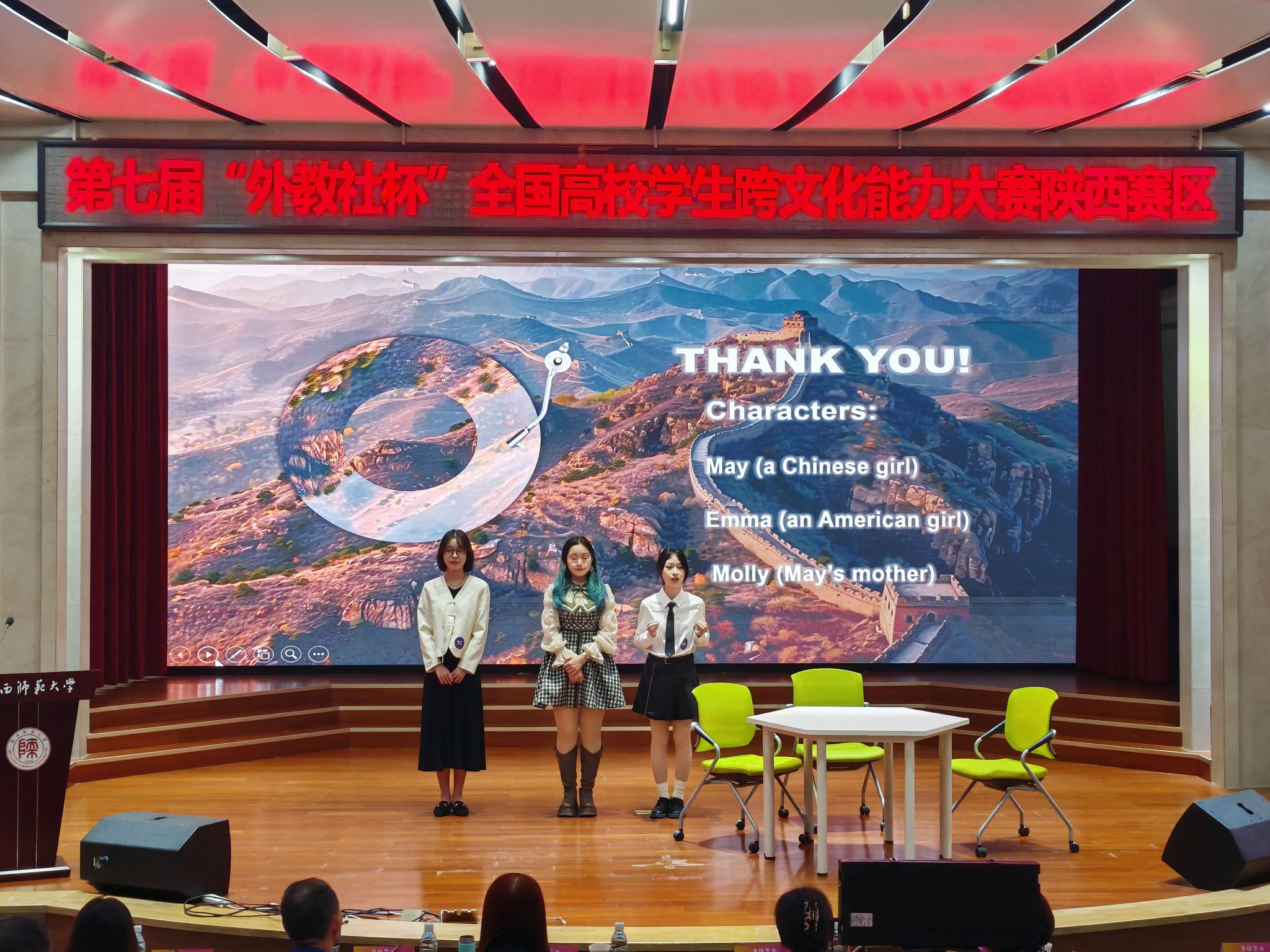 大赛由上海外语教育出版社、陕西高等学校大学外语教学研究会和学院教务处主办,永利集团3044am官方入口承办。通过初赛阶段的校级选拔,共有40个参赛团队参加省级复赛,学校成功晋级省赛。在复赛中,晋级选手分别饰演不同国家的人物,从多元文化角度从生活、公共外交和商务沟通等方面充分展现了选手们多维度的跨文化交际能力,赢得了评委们的一致好评与认可。比赛过程中,参赛选手们结合自身经历,运用跨文化交际相关理论和案例,进行8—10分钟的会话、谈判、角色扮演和情景剧等多形式融合的表演,并对案例中的跨文化现象和交际策略等进行分析。参赛作品主题丰富,从书法到中药,从中国功夫、中国新年到商务谈判,从国产游戏《黑神话:悟空》到中国龙文化,丰富的内容和新颖的选题充分展现了选手们优秀的英语表达能力、逻辑思维能力,更体现了他们深厚的文化底蕴和跨文化沟通能力。