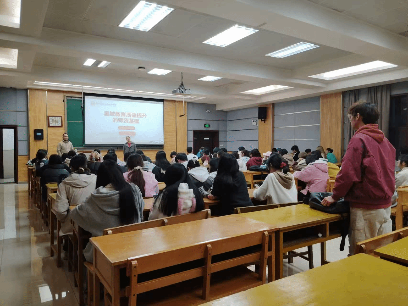 最后,周兆海教授对县域教育质量中优质师资的能动性与主动性进行了深刻分析。为“优师计划”师范生明确了在县域教育的发展空间和良好待遇,更是勉励各位同学为成为一名优秀教师时刻准备着,不仅要做思考的教师,更要做县域教育发展的引领者,让同学们更加坚定了为国家基础教育事业贡献力量的决心。
