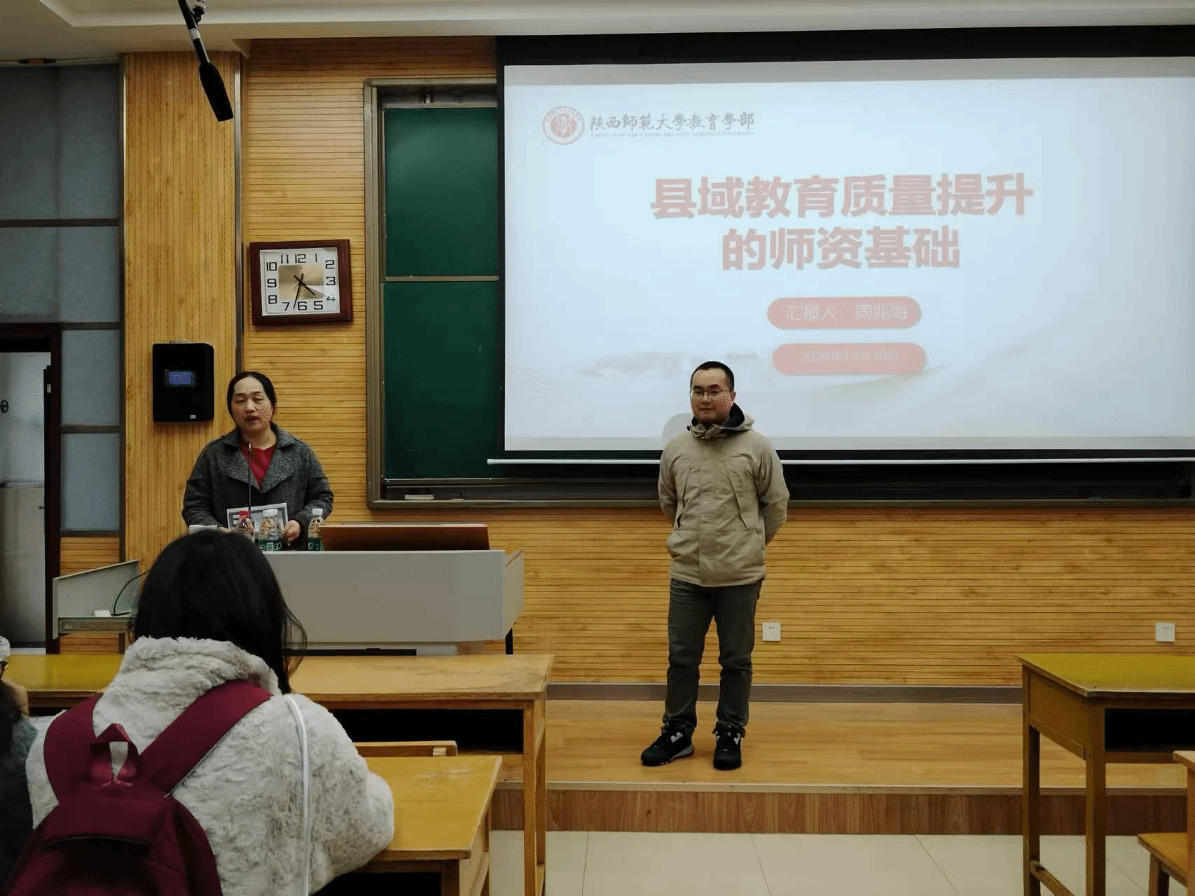 讲座伊始,周兆海副教授从对县域的概念分析和情况介绍着手,主要讲了“为什么要着力提升县域教育的质量”“县域教育质量提升的前提是改善师资”和“县域教育质量中优质师资的能动性与主动性”三个大方面。周教授不仅针对县域教育质量提升问题,从县域情况、师资基础的角度进行分析,探讨了师资队伍的现状、师资基础对教育质量的影响以及提升师资基础的策略,还强调了加强师资队伍建设是提高县域教育质量的关键。