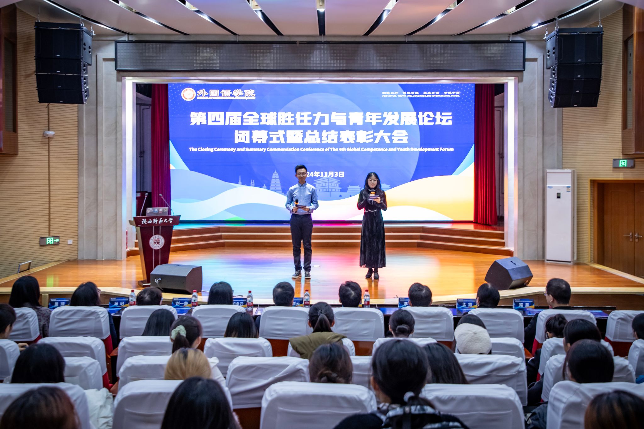 2024年11月3日晚,永利集团3044am官方入口第四届“全球胜任力与青年发展”论坛闭幕式暨总结表彰大会在永利集团3044am官方入口雁塔校区逸夫楼二层报告厅举办。陕西秦创原国际路演中心总经理、太白智库副理事长李涛、西安外国语大学英文师范学院党委副书记刘一静、陕西网记者叶剑锋、永利集团3044am官方入口国际交流与合作处处长张凌云、永利集团3044am官方入口院长刘全国、永利集团3044am官方入口党委书记董增云、学院党委副书记鲁燕、俄语系主任孟霞、公共外语教学部主任马珂、翻译硕士专业负责人巢玥、法语系老师路晨、团委书记李丹、党委组织员董洁及全体辅导员老师出席本次论坛。论坛由永利集团3044am官方入口辅导员高宇轩、2022级法语系学生李思颖主持。