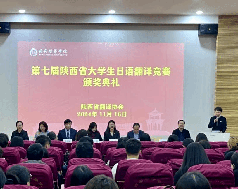 2024年11月16日,第七届陕西省大学生日语翻译竞赛暨颁奖典礼在西安培华学院举行。此次竞赛吸引了来自全省13所高校的25名优秀选手同场竞技。