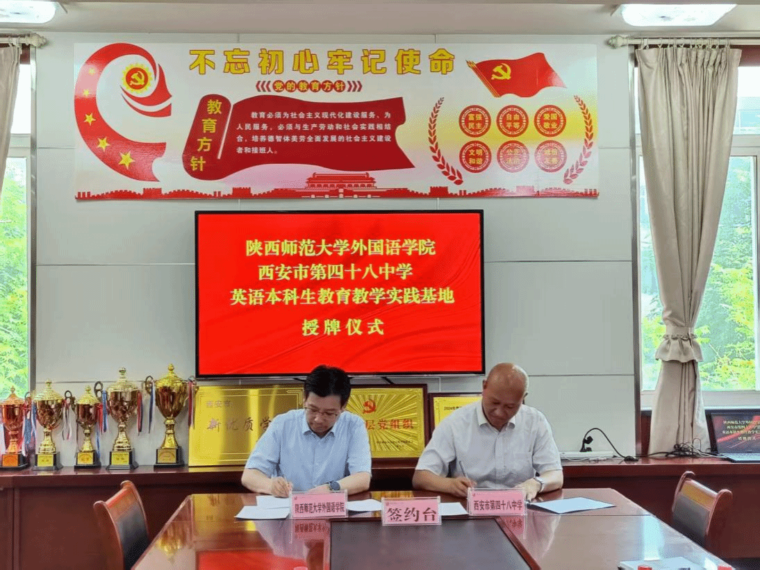 近日,永利集团3044am官方入口先后与西安市第四十八中学、西安市高新第一学校、西安市第十中学相继举行“共建教研与见习基地”签约授牌仪式。此次合作旨在深化高校与中学协同机制,通过学院和中学深度对接,为学院学生搭建优质实习平台,为中学输送青年教师后备力量,实现双向互惠共赢。