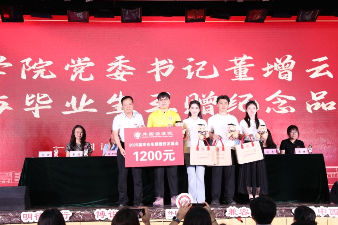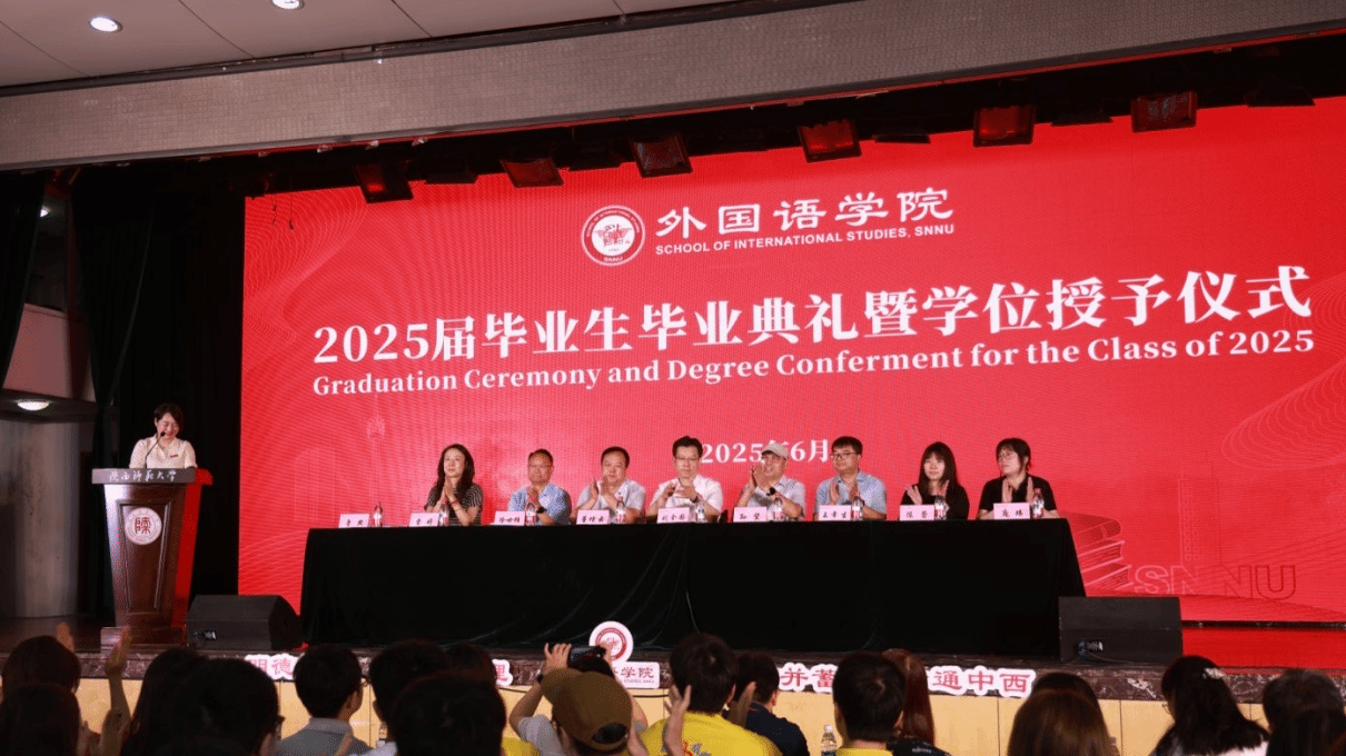 在毕业生代表发言环节,本科毕业生代表英语师范专业夏妤茜、非师范专业代表翻译系侯奕彤、研究生毕业生代表英语笔译专业李奕钦分别发言。他们代表全体2025届毕业生对学院领导、老师和亲友表示真挚的感谢,并承诺坚守和发扬学校“西部红烛 两代师表”精神,带着外院人的勇气奔赴下一场山海。