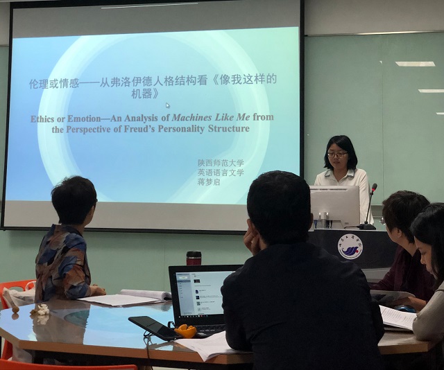 5日下午,在分组讨论环节,来自全国的专家学者和师生围绕“外国经典的当代阐释与中国化研究”“外国文学中的创伤、女性问题研究”“当代外国文学中的族裔、记忆研究”等7个专题103个报告展开了精彩的汇报与交流。永利官网2019级研究生—蒋梦启同学做了题为“从弗洛伊德的人格结构理论分析《像我这样的机器》”的汇报,文章具体从从弗洛伊德的人格结构理论分析伦理和情感对人与机器的影响。本文依次分析机器人亚当和人类查理的本我、自我和超我,揭示了人格结构失衡带来的悲剧。如何消除情感对个体的过度影响,创造一个道德水准高的世界,是人工智能伦理学领域的一个重大问题。人与机器的矛盾是伦理与情感冲突的隐喻,而亚当的毁灭则说明了人类面临的伦理困境。弗洛伊德的理论不仅可以对小说中的人物进行不同的解读,还可以为未来技术的伦理发展提供指导。东南大学永利集团3044am官方入口教授韦清琦对其进行点评,并提出完善意见。