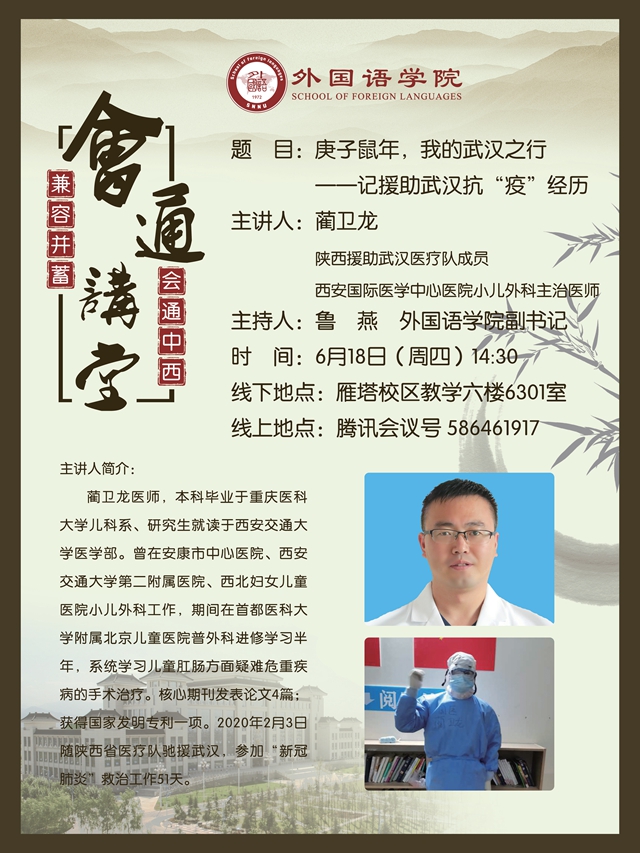 为了不断深化教职工师德师风涵养教育,进一步深入学习贯彻落实习近平总书记对疫情防控工作的重要批示指示和讲话精神,深化爱国主义教育,强化“四个自信”,6月18日下午两点半,永利集团3044am官方入口特邀西安国际医学中心医院陕西援助武汉医疗队成员蔺卫龙医生在永利集团3044am官方入口6301多功能厅开展“抗疫精神分享会”。三百余名师生通过线上和线下相约,一同聆听了蔺医生的抗疫故事。永利集团3044am官方入口党委书记马正平出席了报告会。