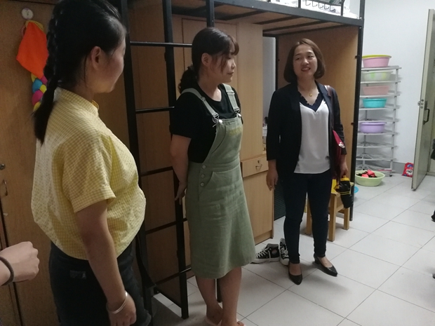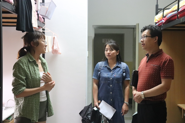 晚7点,学院各位领导一同来到公寓二楼看望新生,同学们对各位领导的到来表示热烈的欢迎。走访过程中,各位领导详细询问了新生们的个人情况,仔细了解同学们的学习生活环境和需求,关注学生公寓安全与卫生,使学生真切感受到学院领导老师的关怀与温暖。