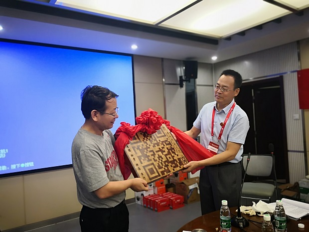 最后,学院向校友们赠送了纪念品——致外语系八九届毕业生的一封信、印有校友们学籍卡入学照片的定制钥匙扣、印有师大校训的折扇。马正平书记代表学院接受了校友们特意为学院制作的木质陕师大二维码纪念章。师生们共同在纪念海报上签字留言,座谈会在师生热烈的合影中圆满结束。