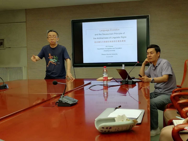 2019年6月13日下午4点,应永利集团3044am官方入口和永利集团3044am官方入口语言与认知研究所所长张韧教授的邀请,浙江大学“求是”特聘教授,爱丁堡大学语言学博士,国家社科基金重大项目首席专家吴义诚教授莅临雁塔校区崇鋈楼敏行厅开展题为“语言演化与语言符号的刻意性”的学术讲座。该讲座为永利集团3044am官方入口著名学者系列讲座第一百零三讲。讲座由张韧教授主持,参加人员包括外国学院部分教师、硕博士研究生、校内其他学院的师生代表。