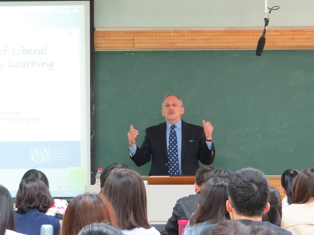 他表示,据数据显示管理和招聘人员在各专业人才之间最重视的学习技能首先是有效清晰的口语交流能力,其次是批判性思维及分析能力、伦理道德判断及决策能力、团队合作能力、独立思考能力、主动性、书面沟通能力及知识实践运用的能力。数据结果还显示,管理和招聘人员认为刚从大学毕业的职场新人大多数是在初级岗位上积累实习经验、做出充分的准备进而取得成功的,所以不是只有身处高职才能成功。这些调查结果表明,大学生除了要有丰富的知识储备之外,还应有过硬的实践技能和综合素质,这些都体现了通识教育的重要性。