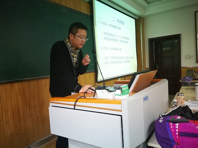 首先,英语系副主任丁礼明老师给指导教师和学生们讲解了学院关于2020届毕业论文安排的统筹规划,并强调了毕业论文的学术问题,如选题、参考文献等问题。