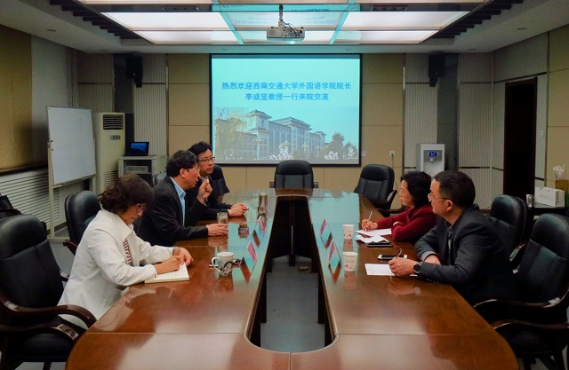 4月10 日下午2:30,西南交通大学永利集团3044am官方入口李成坚院长、俞森林副院长一行来到学院交流。学院王启龙院长、刘全国副院长以及马兰副书记在学院会议室接待了李院长一行。座谈会由王启龙院长主持。