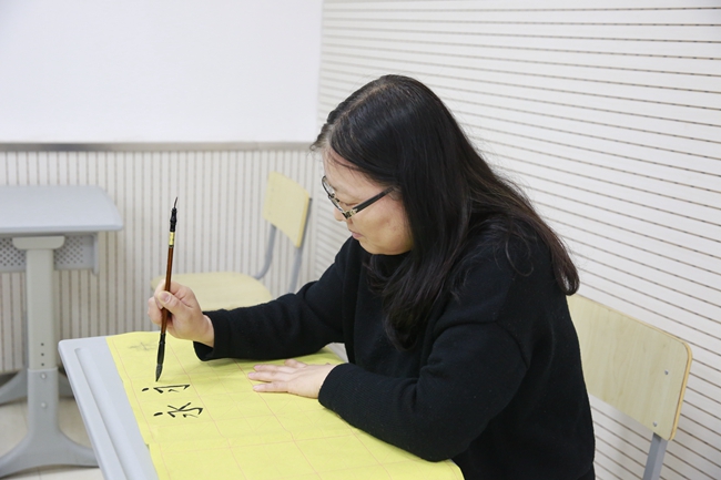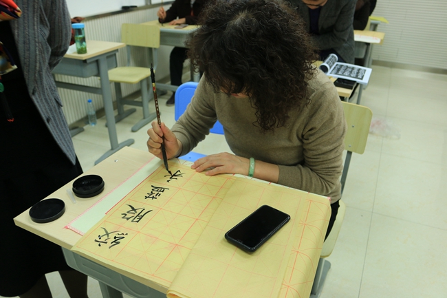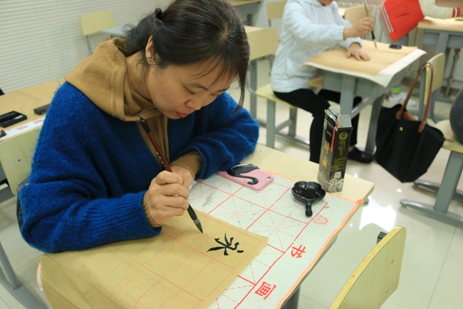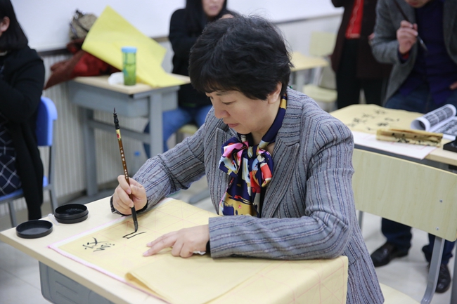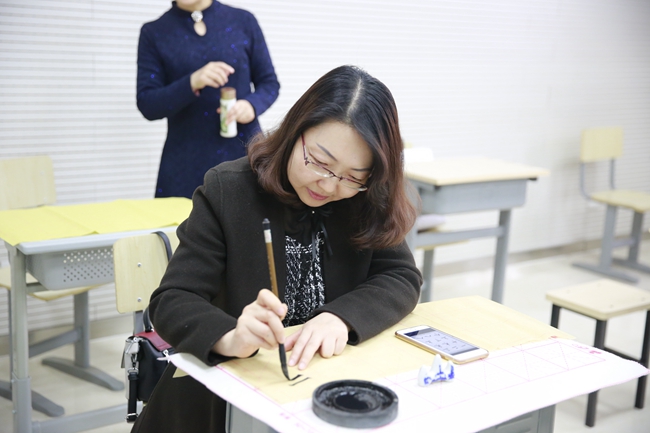 最后,在闫老师的示范指导下,各位老师开始亲身体味书法的魅力。这次书法活动拓宽了老师们对书法的视野,提高了老师们对书法艺术的认知与鉴赏能力,也有利于传播中国传统文化,为引领教育学生打下了更坚实的基础。