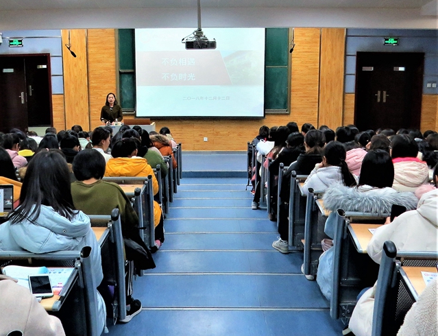为引导永利官网2018级新生树立正确的价值观念,明确青年学子所肩负的责任和使命,以及在大学四年中如何脚踏实地学习和生活。12月12日晚7点,永利集团3044am官方入口副院长鲁燕老师在5104教室为2018级全体学生做主题为“不负相遇,不负时光”入学教育报告会。报告会由辅导员屈婉婷主持。