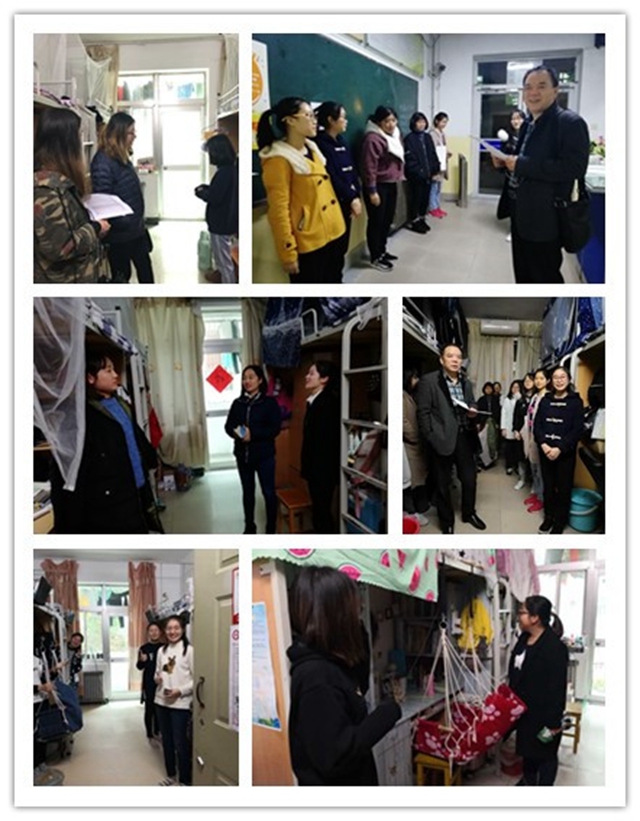 11月7日下午,永利集团3044am官方入口副院长鲁燕带领全体本科生和研究生辅导员、学生会干部、各班班长及生活委员,对学生所在的公寓一、公寓三、公寓四楼进行了全面检查,重点从宿舍卫生和安全情况、冬季防火用电、专业走廊建设等方面开展检查,同时对一些重点宿舍开展了走访。