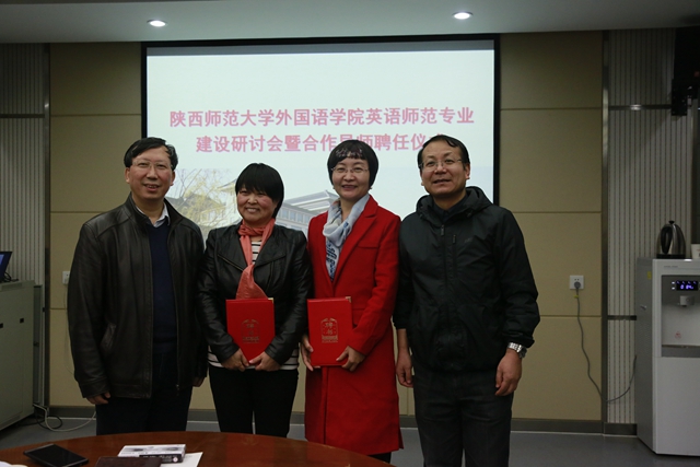 会议上,王启龙院长和马正平书记为西安交通大学附属中学特级教师陈江丽、永利集团3044am官方入口附属中学英语教研组长雷双娥老师颁发和英语师范专业人才培养合作导师聘书。