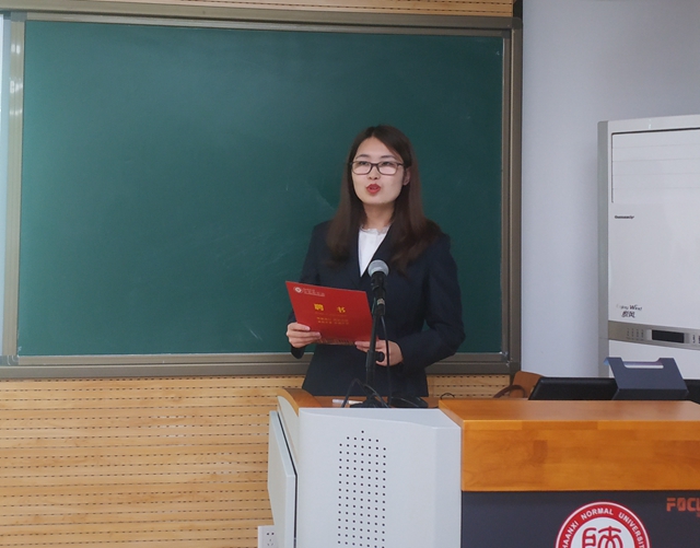 大会随后由董老师宣读新一届研会成员名单,为主席团及各位干部颁发聘书,并请第七届研会主席王强伟和本届研会主席刘玥缃先后对研会过往工作进行回顾总结及对未来工作的发展提出新的展望,继而进行会旗交接仪式。大会尾声,董老师宣读了优秀学生干部表彰决定,并对本次换届大会做出总结。她表示,研会成员应当饱有高度的责任感,以认真的态度完成各项工作,为研会的发展做出更大贡献。