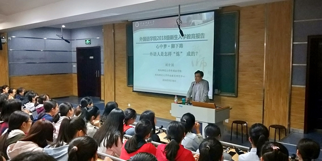 为帮助新生更加深入认识所学专业,顺利适应大学自主学习生活和方式,明确青年外语学子所担当的责任和使命。9月18日晚7点,永利集团3044am官方入口副院长刘全国教授在5101教室给全体2018级本科新生做入学教育报告,题目为“心中梦·脚下路——外语人是怎样'炼'成的”。报告会由2018级辅导员屈婉婷主持。