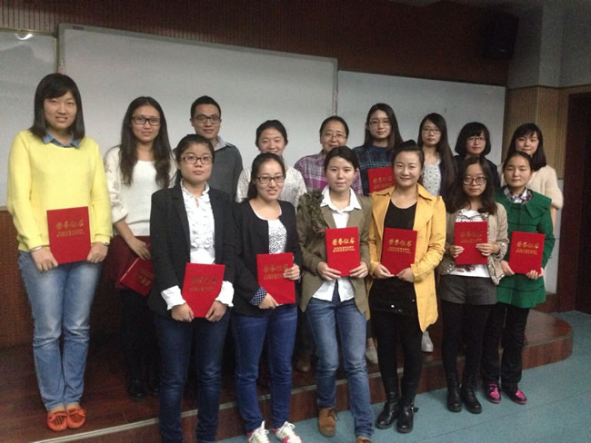 在交流会最后,韦理老师为2013级的优秀实习生颁发了证书并且做了精彩的总结和就研究生学习和发现问题方面给出了建设性意见。韦老师提到作为研究生,应该时时刻刻注重研究意识和论文意识的培养。基于上述实习生的分享经验,韦老师就学生怎样学提出如何让学生在学习中体会快乐和教师怎样教中的教师教育和教材分析等研究着眼点,使在座学生受益匪浅。