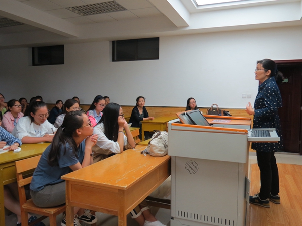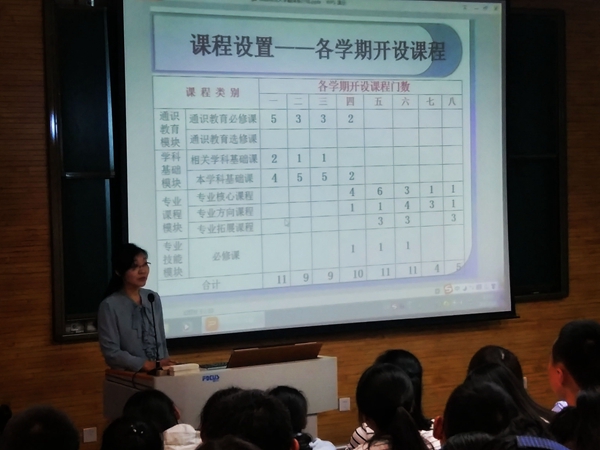 杨冬敏老师首先发言,他热情地欢迎本系的新同学来到这个温暖的大家庭,随后详细介绍了翻译系的基本情况,包括该系的历史发展、师资力量、科研成果、培育方向、课程设置等。接下来,王辉老师为同学们特别是免费师范生们讲解了有关英语系师范专业的一些基本情况,包括课程安排,职后教育和就业情况等等。操林英老师对课程进行了讲解。随后,吕敏宏老师上台发言,为同学们介绍英语创新实验班的基本情况,她叮嘱大家一定要深入学科,对将来的发展要规划一个清晰的蓝图。最后,幽默风趣的刘庆松老师向大家推荐了一些经典的优秀书籍,并激励同学在阅读之外还要注重积极参与社会实践,多考察,多思考。