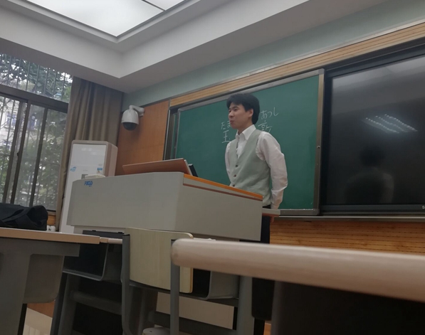 王红老师首先介绍了永利官网日语系的师资力量,浓厚的学术氛围以及丰富多彩的文化活动和课外生活。她强调,日语的学习是快乐与挑战并存的,需要各位同学抛弃安逸玩乐的思想,刻苦学习,刻苦钻研。接下来,张桦老师则更进一步地介绍了日语学习的秘诀,她指出:要牢牢抓住日语语法这一最为关键之处,同时也要扎实学好听力、会话等课程。她还用“语法是米饭,其他课程是菜,不吃菜会觉得索然无味,而不吃饭会饿”这一形象比喻来解释日语语法与其他学科的关系,使学生更加深刻地了解到语法的重要性。接着2017级新生的任课教师史曼和乐燕子都相继表示会在接下来的学习生活中兢兢业业,与同学亦师亦友,在日语的殿堂中互相帮助,共同成长。最后,来自日本的听力老师玉冈敦迈着谦逊的步伐登上了讲台,虽然说的是日文,但同学们还是从玉冈老师温文尔雅的语调中感受到了他对新生的期待和祝福。