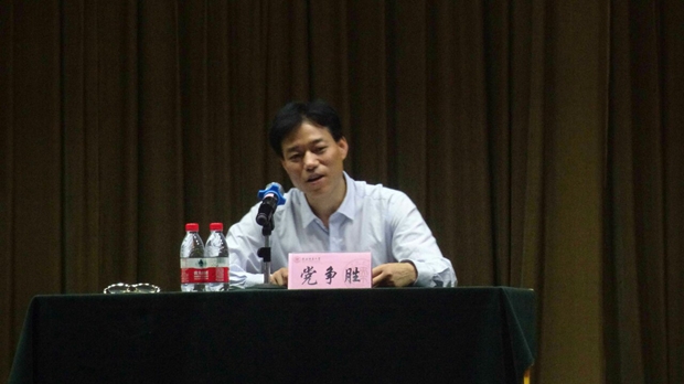为了帮助2017级新生更好地适应大学学习生活,进一步理解专业的意义和专业发展方向,9月7日下午,永利官网专门邀请了西安外国语大学副校长、学院1986级校友党争胜在积学堂为2017级全体本科和研究生新生开展了题为“外语专业教育与中华文化之复兴传播”的入学教育报告。这也是继院长、书记报告会后安排的第三场入学教育报告。报告会由院长王启龙教授主持,学院党委书记马正平、原学院党委书记冯武鸣、学院副院长鲁燕、新生辅导员高芳卉、李丹与2017级全体新生共同聆听了报告。