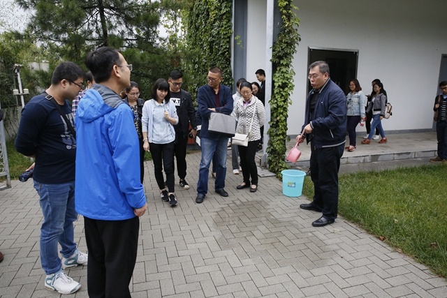 随后,一行人走进西咸新区海绵城市研究试验中心,张志杰同志全面解读了西咸新区海绵城市建设规划和技术驱动。他指出,海绵城市建设因地制宜,综合采取“渗、滞、蓄、净、用、排”等措施,自然积存、自然渗透、自然净化,最大限度地减少城市开发建设对生态环境的影响,实现城市良性水循环。他还为考察团演示了雨水下渗的过程,并带领大家实地考察了沣西新城中心绿廊的雨水净化及循环利用系统。