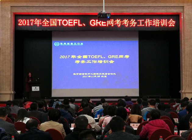 由教育部考试中心主办的“2017年全国托福、GRE考务工作培训会”于11月1-3日在北京成功举行。教育部考试中心国际交流与合作处处长张进,公安部考试安全工作有关部门负责人,考试部考试中心党委副书记兼纪委书记李光明以及来自全国140多个托福、GRE考点的代表出席本次会议。永利官网托福GRE考试中心负责人马兰、王佐老师应邀参加了本次会议。开幕式由教育部考试中心国际交流与合作处副处长韩雁主持。